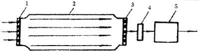 1-入口膜;2-衰变筒;3-出口膜;4-流量计;5-抽气泵